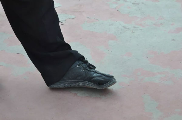 ▲冠军队的一名队员在比赛中把鞋子都踩裂了,可见这个“冠军”得来不易啊